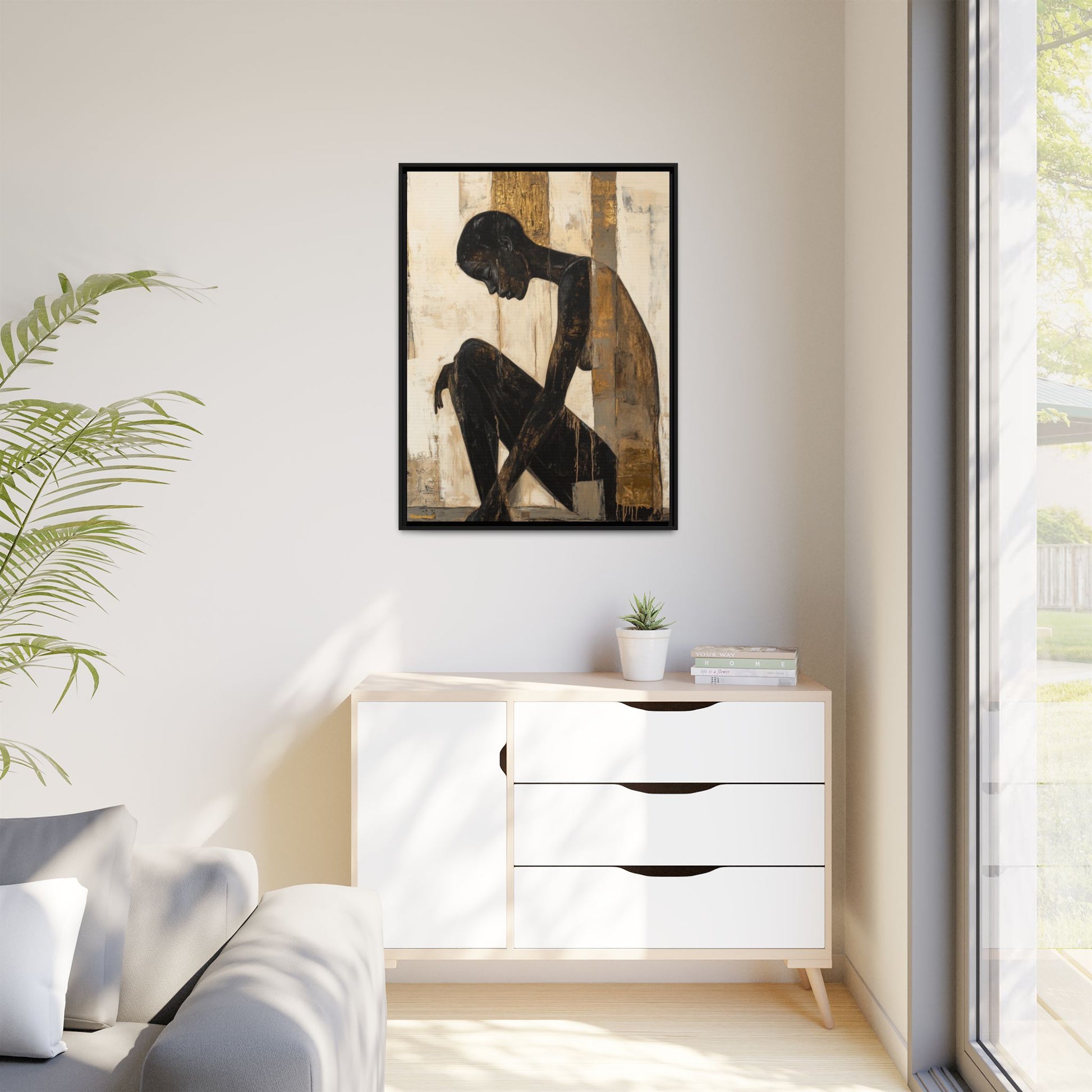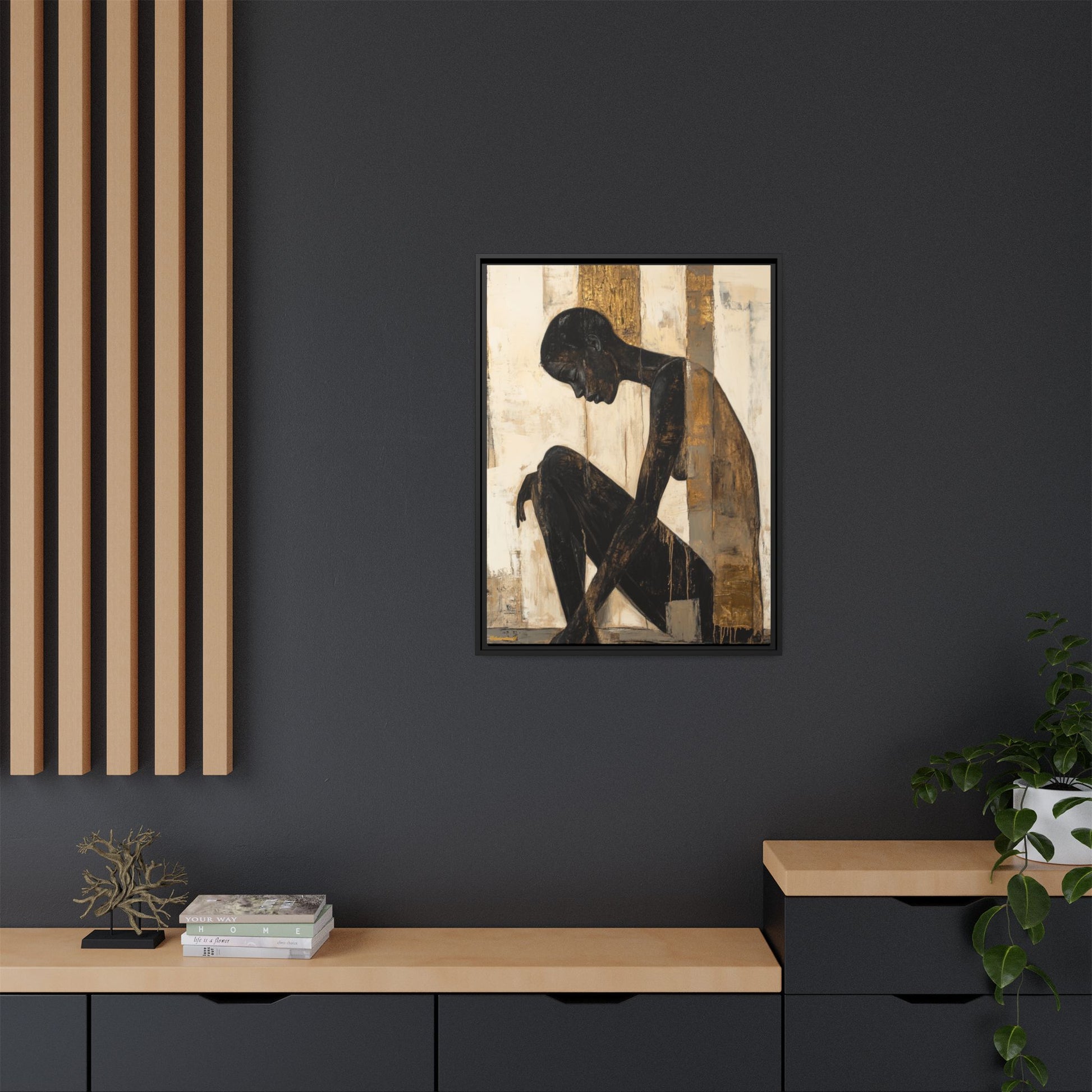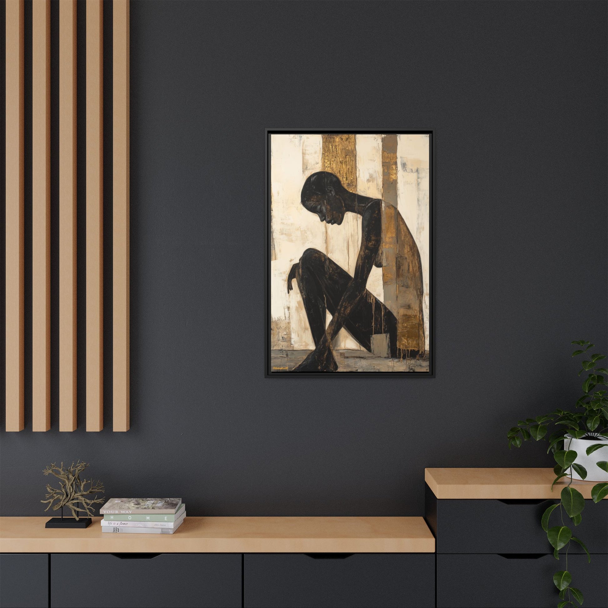 THE THINKER'S REPRIEVE: Cast in shadow against a fragmented golden canvas, this modern thinker's reprieve captures the quiet moments of reflection amidst the storms of life.