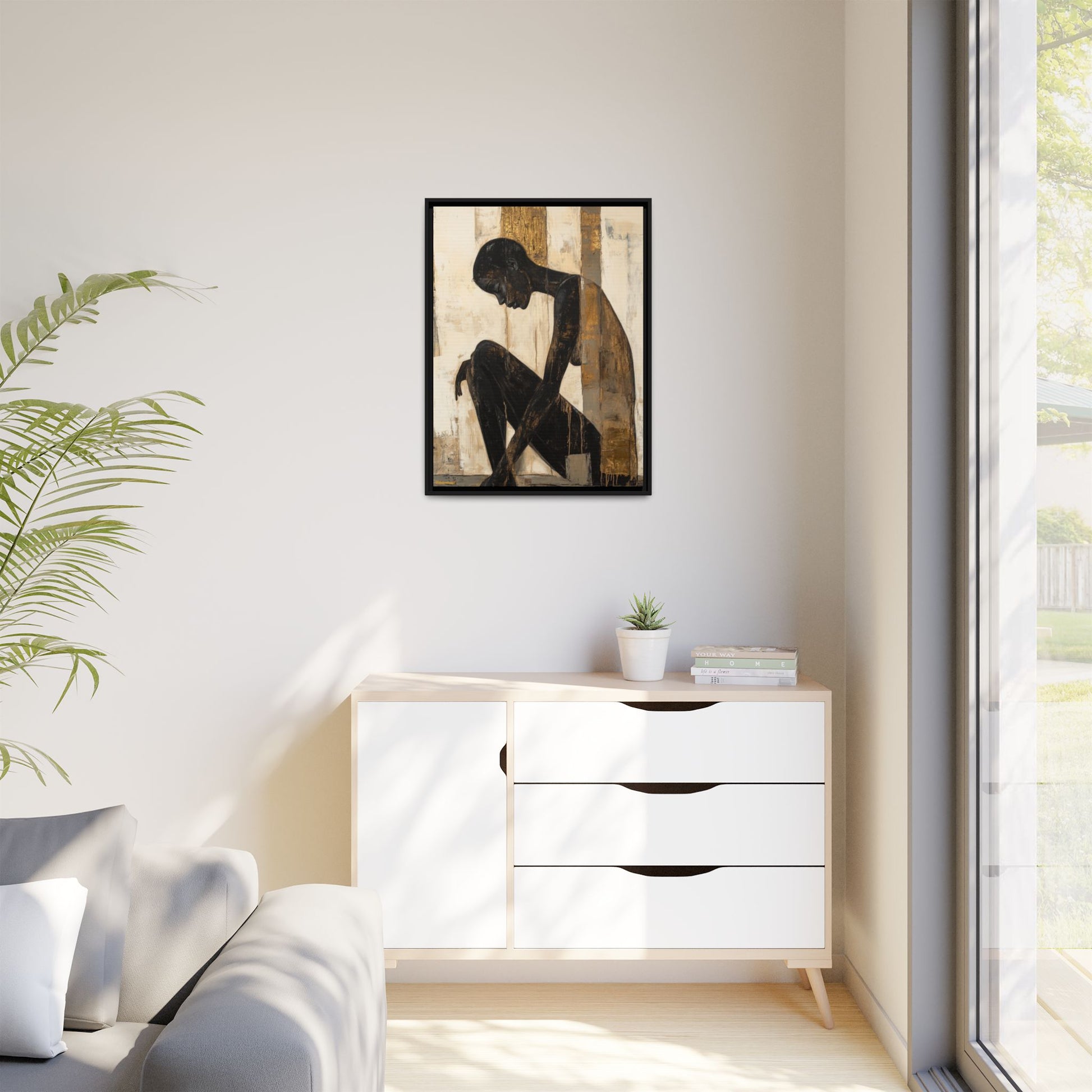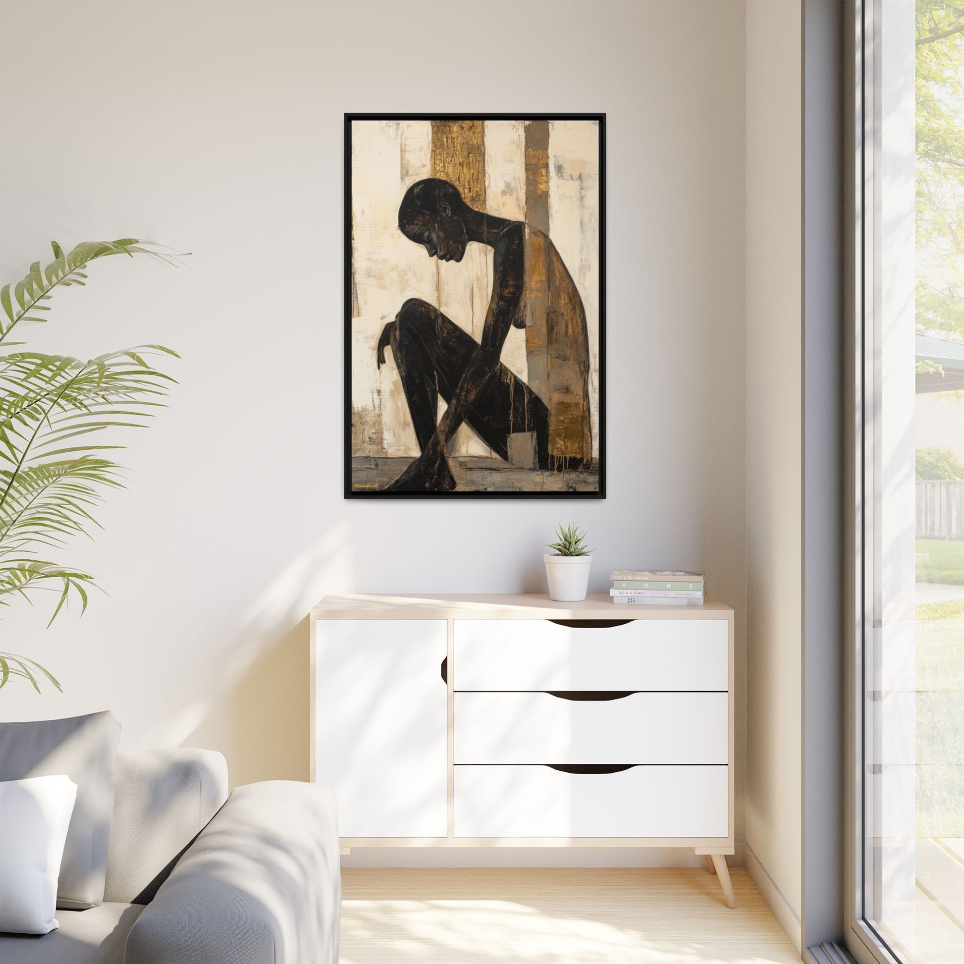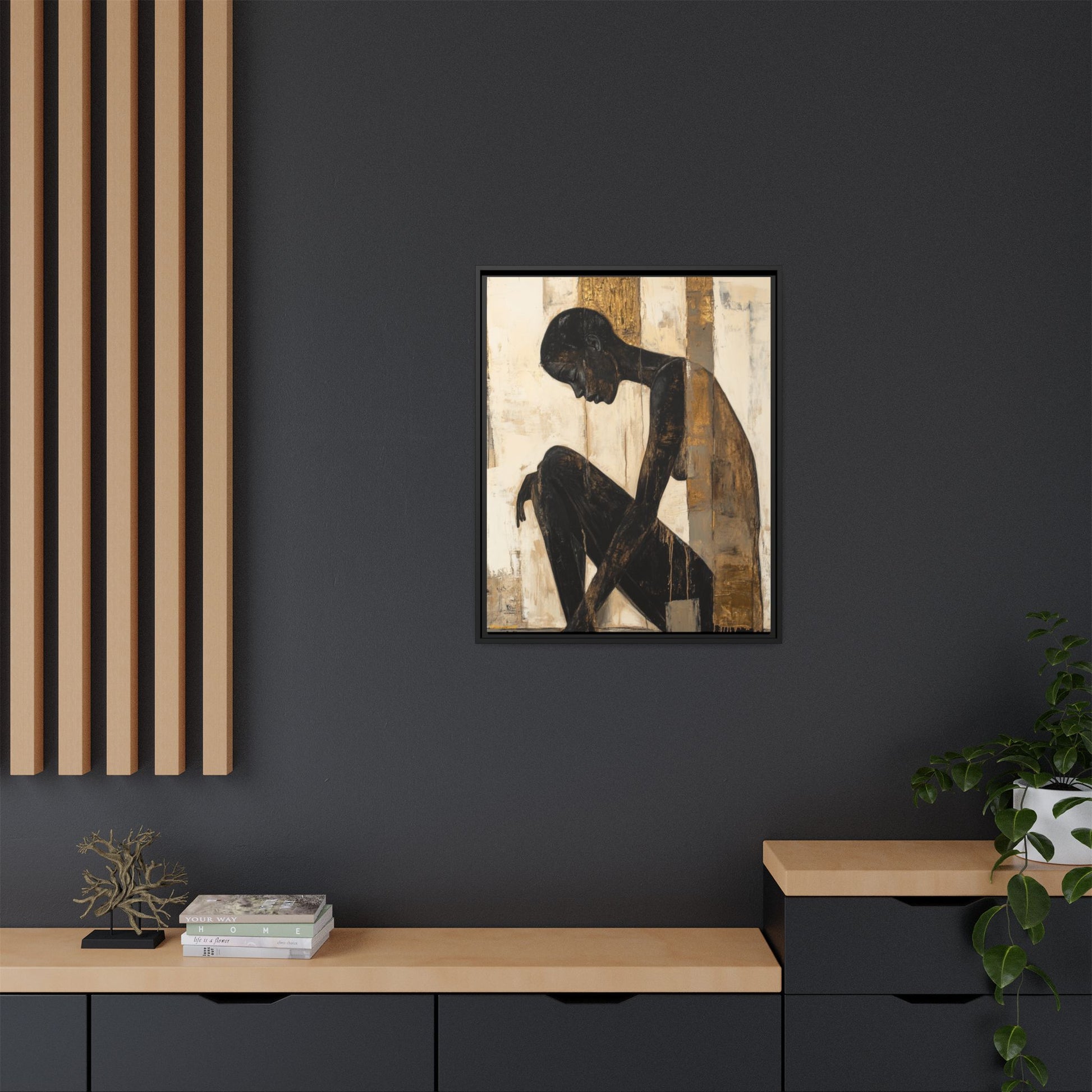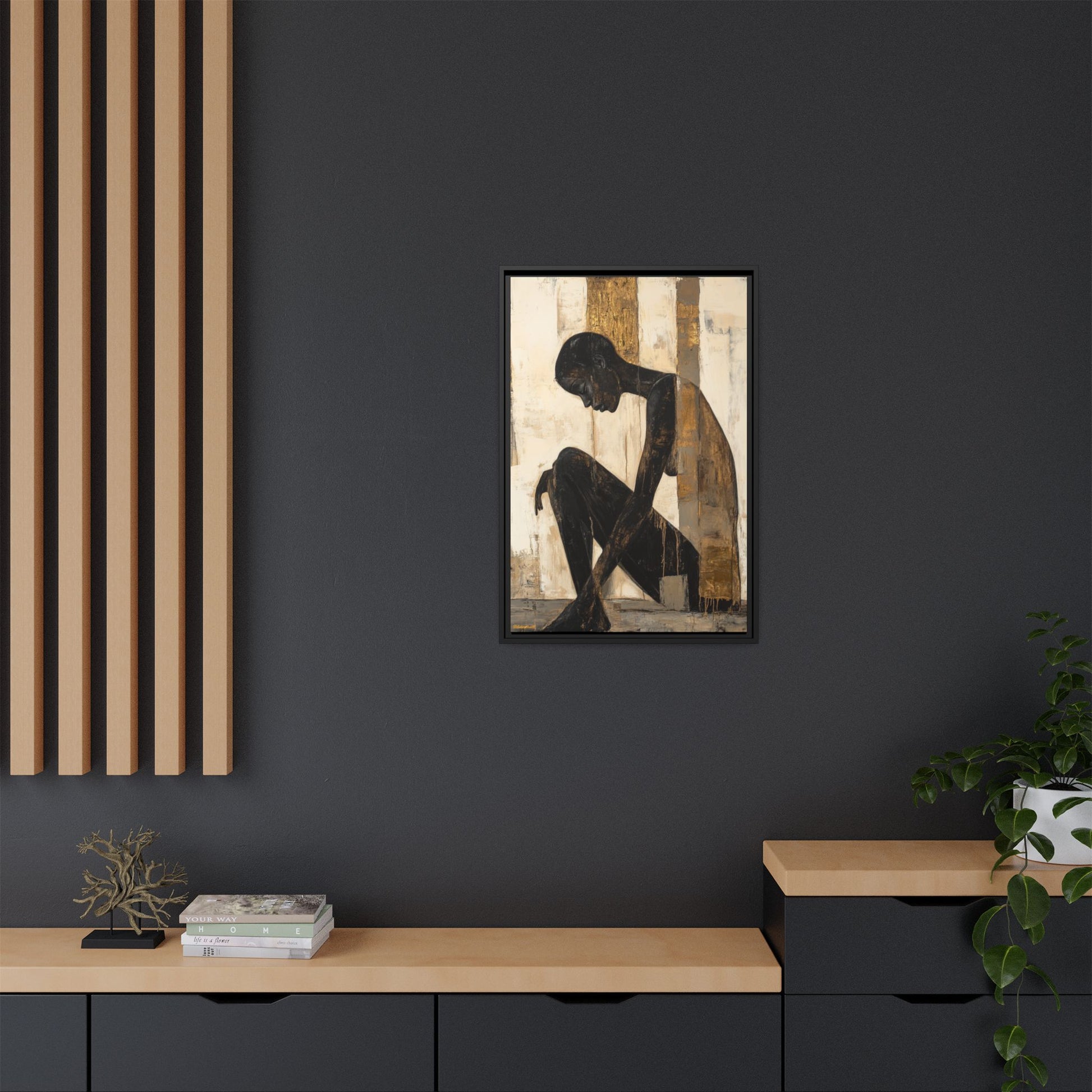 THE THINKER'S REPRIEVE: Cast in shadow against a fragmented golden canvas, this modern thinker's reprieve captures the quiet moments of reflection amidst the storms of life.